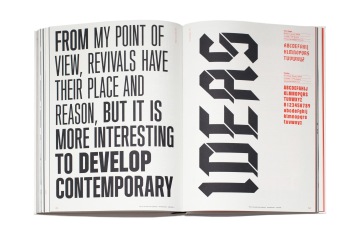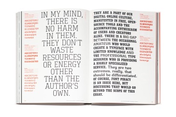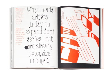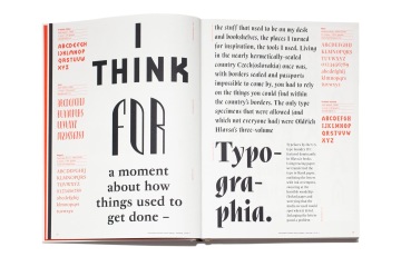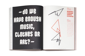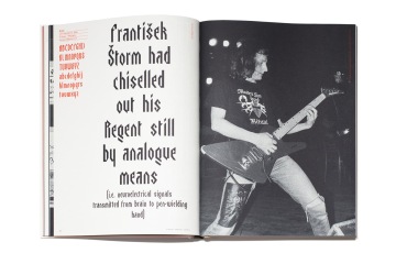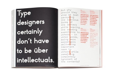 8 textů, 103 designérů, 399 písem, 288 stran, 1902 řezů, 9010. Typo 9010 shrnuje historii českého digitalizovaného písma mezi lety 1990 a 2010 a zároveň funguje jako jeho vzorník. Na rozdíl od klasického „specimenu“ ho lze číst kontinuálně od začátku do konce. Zuzana Lednická použila texty Petra Babáka, Filipa Blažka, Veroniky Burian, Karla Halouna, Ondřeje Chorého, Base Jacobse, Pavela Nogy, Jana Solpery a Františka Štorma na ukázku abeced rovnou tak, jak se používají v sazbě. Titulková písma se tomu sice občas brání a o sazbě těžko mluvit jako o standardní, ale písma se tak předvedou líp než kdyby jen skákala přes líného psa ve vzorníku a četba je záživnější než ve vzorné úpravě akademické literatury. Chronologické řazení navíc přirozeně sdružuje písma, která by se jinak těžko potkala. Kombinace písma Regent Františka Štorma nebo Mongoloid Ondřeje Chorého s kubistickými lomy Reflexu Aleše Najbrta ale funguje nečekaně. Celé to končí jednou opravdu velikou, krásnou tečkou z LSNY Petra Bosáka.